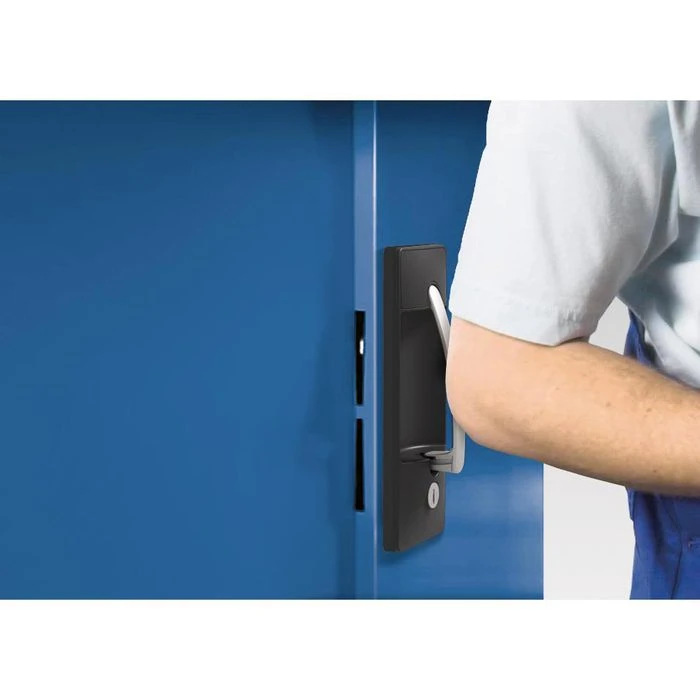 Türen: verstärkte Flügeltüren mit 3-riegeligem Muldengriffschloss “Ergo-Lock”, inkl. 2 Schlüsseln