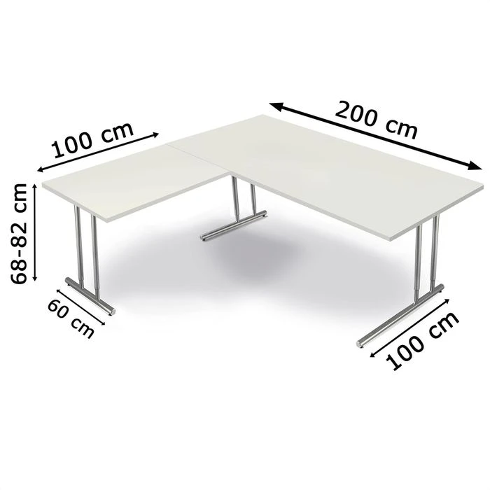 Maße Haupttisch: 200 x 68-82 x 100 cm (BxHxT)
