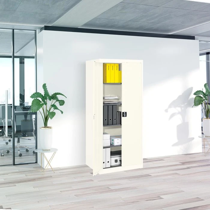 Die abschließbaren Flügeltüren verhindern eine ungewollte Einsicht fremder Personen in Ihre Akten.