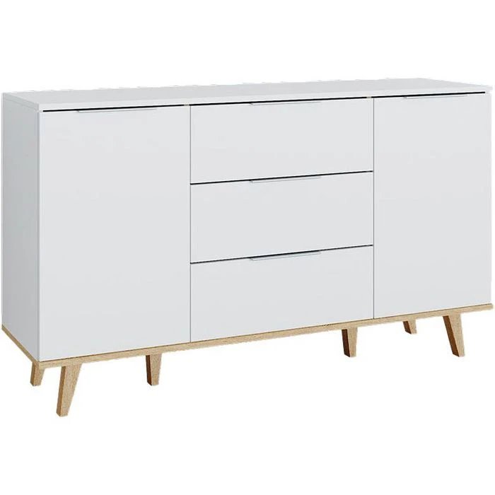 • Vier Regalfächer hinter zwei Türen und drei Schubladen