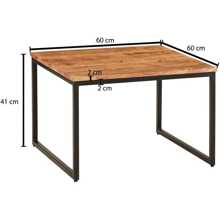 Der Couchtisch besteht aus Akazien-Massivholz und wird in Handarbeit gefertigt, dadurch kann es zu Farbabweichungen oder Unebenheiten kommen.